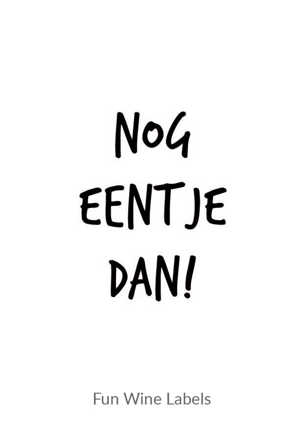 Wijnetiket ‘Nog Eentje’ maakt van elke fles wijn een origineel cadeau en je plakt het gemakkelijk over een bestaand wijnetiket heen. Het is een perfect cadeau voor een wijnliefhebber die wel van een beetje humor houdt, of voor je wijnmaatje. Het is natuurlijk erg belangrijk om snel te laten weten dat je het niet bij maar één glaasje gaat houden!